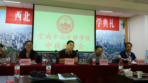 宝鸡中山专修学院教师中秋座谈会于2016年9月11日上午十点召开,王玉海副院长主持会议,何院长向大家致以节日的问候。