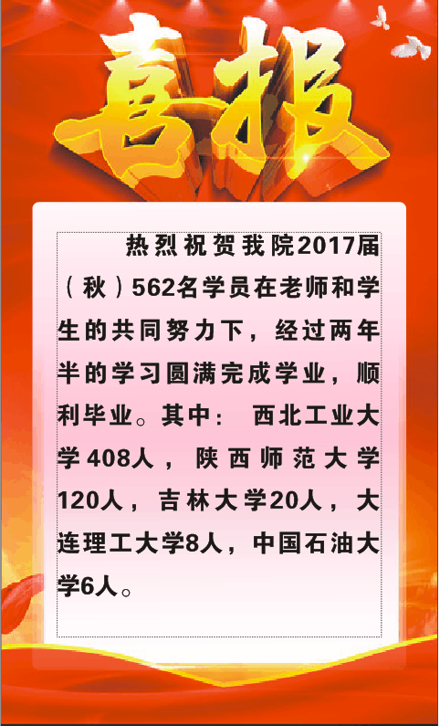西北工业大学2017届(秋)毕业生喜报