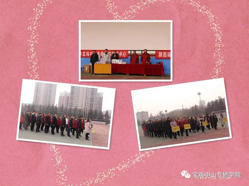 9:30运动会开始,伴随着运动员进行曲,西北工业大学远程教育学生代表、陕西师范大学远程教育学生代表队、教师代表队、裁判员代表队依次迈着矫健的步伐进场。入场后,大家跟着音乐齐唱国歌,国歌激发了大家的士气。接下来,何院长讲话,他说,今天天气寒冷,但大家的热情很高,希望今天的活动圆满。2018年还有两天就过完了,2019年即将来临,首先祝愿我们的国家繁荣昌盛!祝愿我们的民族富强!祝愿我们宝鸡中山专修学院永远兴旺!祝愿每个人的家庭安康幸福!祝愿每个人工作顺利!何院长讲话结束,运行项目开始比赛。