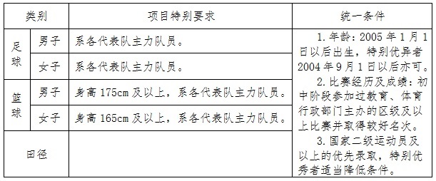 ⑴田径:测试专项设置有200M、400M、1500M、三级跳远(跳远)、跳高、铅球,以上项目只测一项。