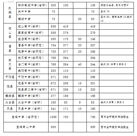 宝鸡市2020年省级示范、省级标准化高中定向生分校招生计划》