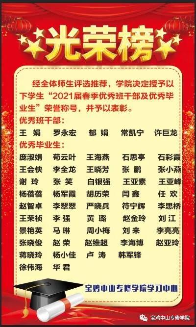 热烈祝贺2021年,宝鸡中山专修学院2021届(春季)748名学员顺利毕业!