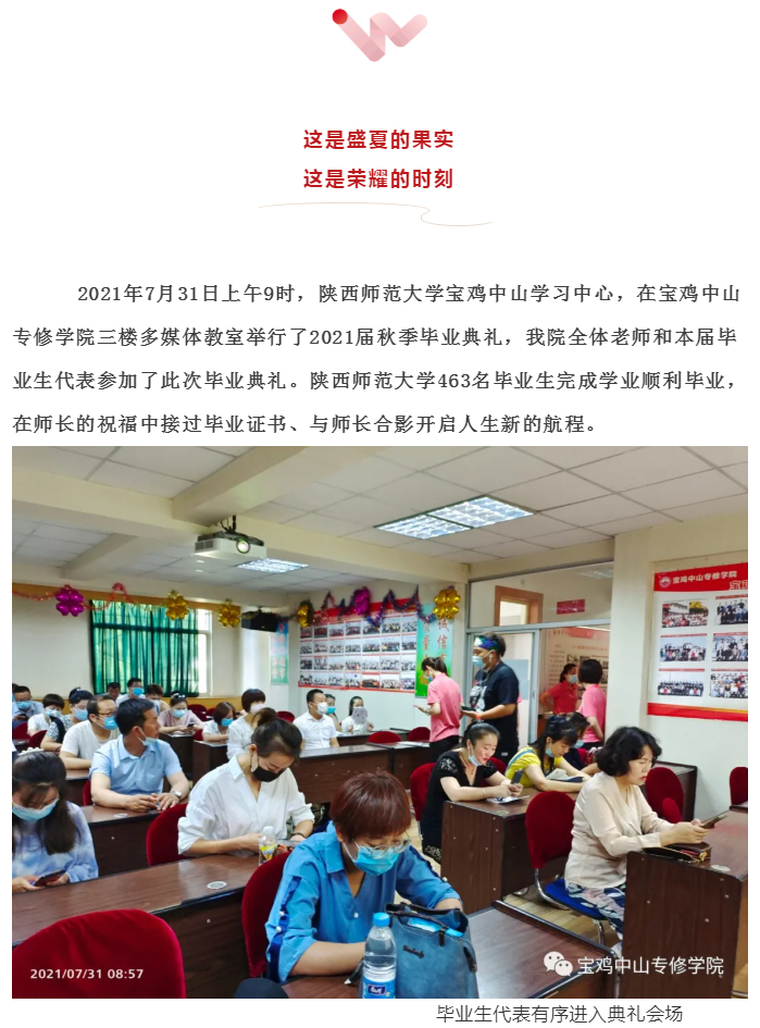 我们毕业啦!2021年7月31日陕西师范大学宝鸡中山学习中心秋季毕业典礼