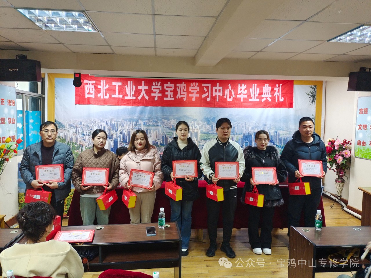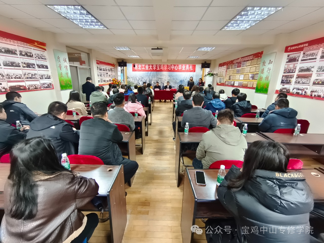 2024年3月10日上午9时,西北工业大学2024届春季毕业典礼在宝鸡中山专修学院三楼多媒体教室隆重举行,学院领导和老师以及毕业生代表参加了此次毕业典礼。 共同祝贺西北工业大学宝鸡中山学习中心171名学生顺利毕业。